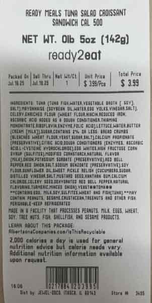 | RM SNDWCH TUNA SALAD CROISSANT SS COLD | 21788400000 | EA | Jul 16 25 Thru Jul 18 25 | Jewel Osco | IL, IN, IA |