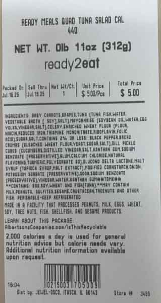 | RM QUAD TUNA SALAD | 21500300000 | EA | Jul 17 25 Thru Jul 19 25 | Jewel Osco | IL, IN, IA |