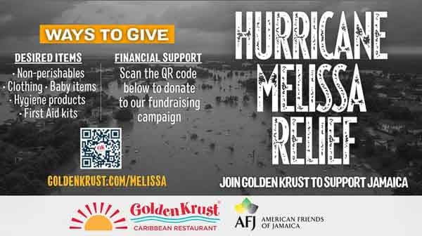 “Golden Krust was built on the values of community and compassion passed down from our founders in Jamaica,” said Steven Clarke, Vice President of Marketing at Golden Krust. “In partnership with AFJ and our fellow organizations, we are committed to delivering meaningful aid and hope to those most affected by Hurricane Melissa.” To donate or learn more about Golden Krust’s Hurricane Melissa Relief Initiative, please click here. |