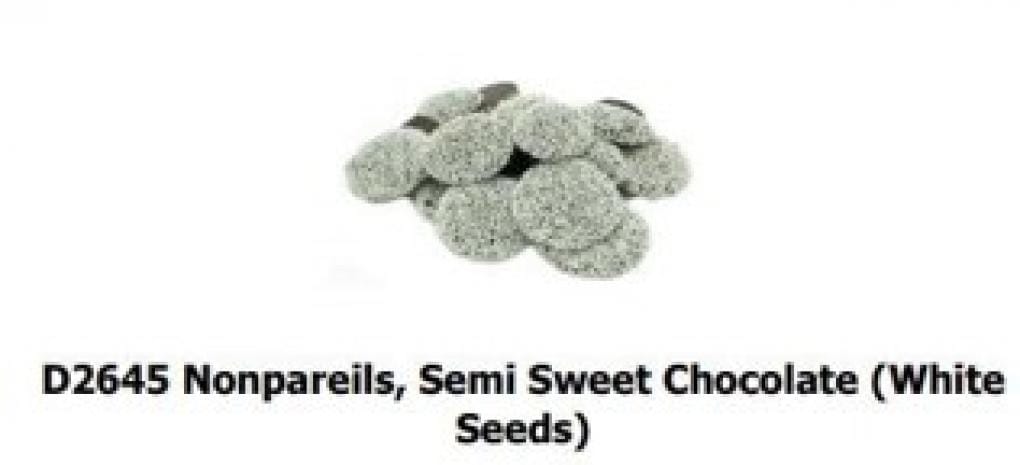 - D2645 – Nonpareils, Semi-Sweet Chocolate (White Seeds)